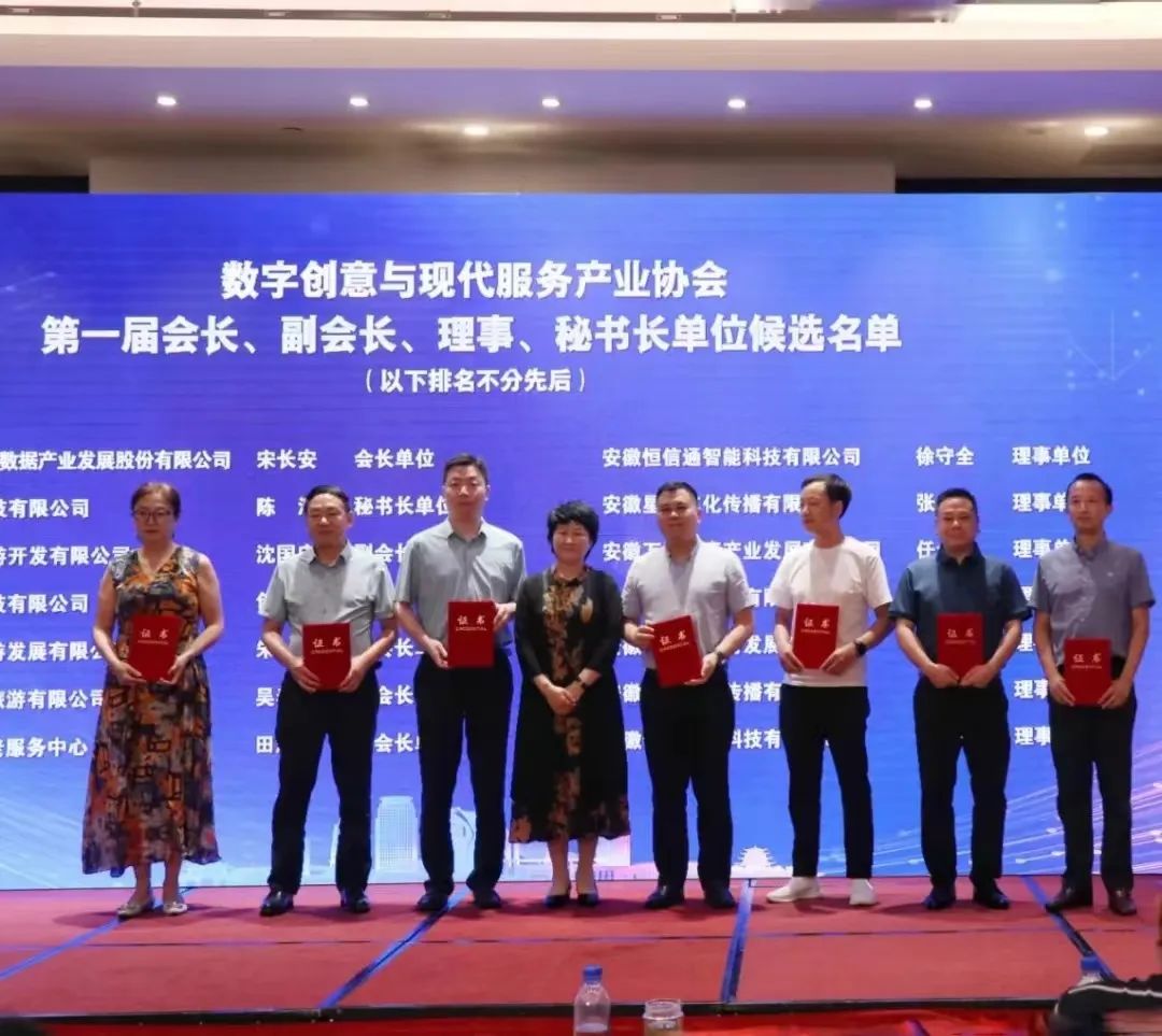 會上,副市長魏武和新當選會長單位法人代表宋長安共同為六安市數(shù)字創(chuàng)意與現(xiàn)代服務產(chǎn)業(yè)協(xié)會揭牌。