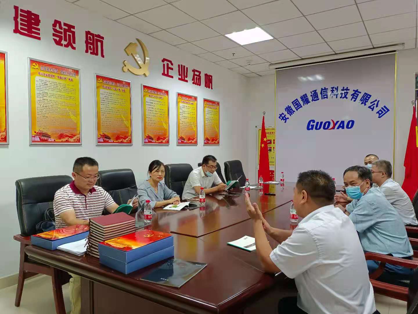2021年8月26日下午,市委黨史學(xué)習(xí)教育第七巡回指導(dǎo)組副組長、市委督察考核辦公室副主任安珺等一行蒞臨安徽國耀通信科技有限公司調(diào)研指導(dǎo)非公企業(yè)黨史學(xué)習(xí)教育工作,市科技局總工程師許有國、市科創(chuàng)中心主任李冬,市科創(chuàng)中心副主任徐治淮等陪同。