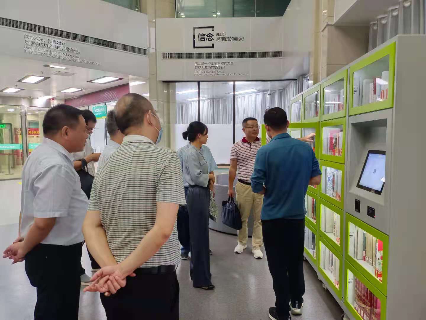會后,安珺一行來到公司自主研發(fā)的智能書柜前,實地察看智能書柜的預(yù)借、借閱、歸還、查詢、資源共享、數(shù)據(jù)統(tǒng)計等功能,大家一致認(rèn)為該書柜具有提供圖書多點布置、讀者自助操作簡單方便的特點,可以提供人性化的功能需求,讓文化的傳播和科技相結(jié)合,真正開創(chuàng)了一個好讀書、勤讀書、讀好書、善讀書的圖書服務(wù)平臺,將成為社會一道亮麗的文化科技風(fēng)景線。