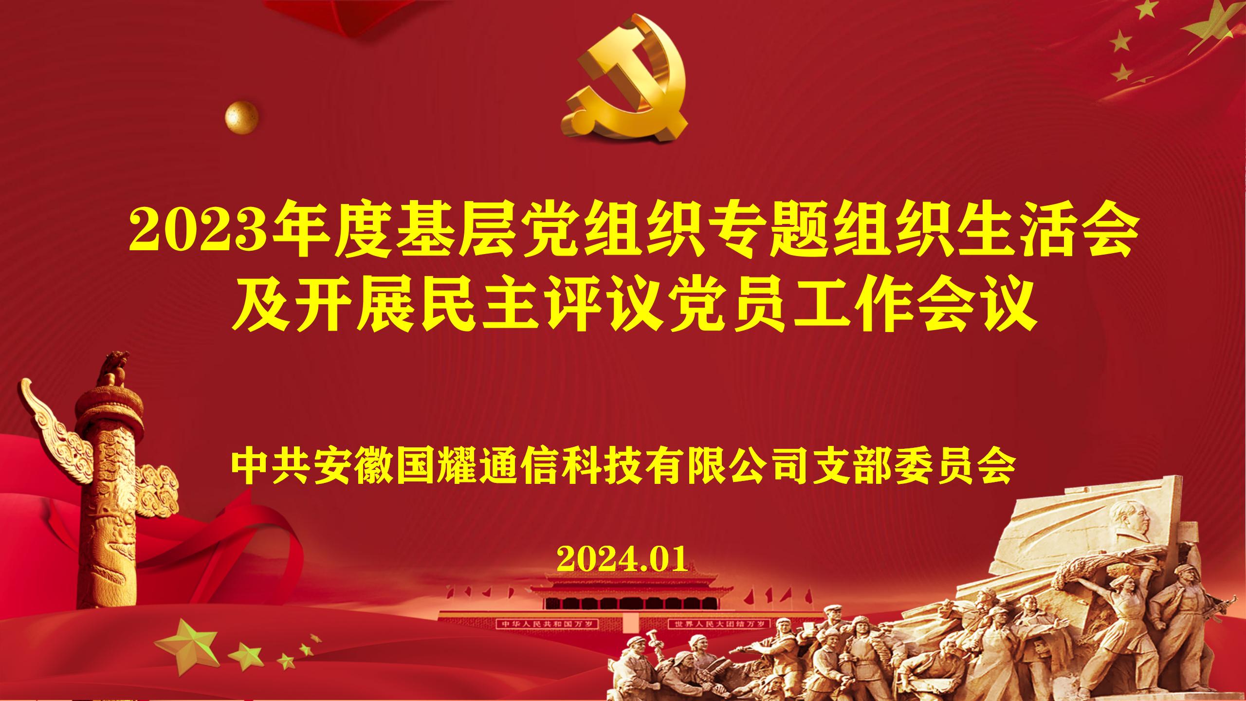 為深入學習習近平新時代中國特色社會主義思想,貫徹黨的二十大精神,提升黨組織凝聚力、向心力和組織力,1月18日,安徽國耀通信科技有限公司黨支部召開專題組織生活會和民主評議黨員工作會議。